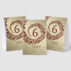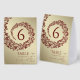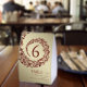 This wedding table number card radiates luxury and charm with its ornate damask frame in striking red and gold tones. The decorative damask border forms a graceful circular design, surrounding the bold table number at the centre. The heading “Table” is written in flowing calligraphy, balancing the bold number typography with a refined and romantic touch.