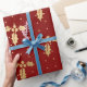 Elegant Red and Gold Foil Christmas Holly Pattern Wrapping Paper