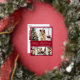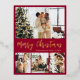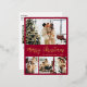 Elegant Calligraphy Minimalist Red and Gold Foil Script 4 Photo Collage Merry Christmas Holiday Postcard. This festive, mimimalist, whimsical four (4) photo holiday card template features a pretty photo collage. The „Merry Christmas” greeting text is written in a beautiful hand lettering brush script font type in gold on burgundy red colour background. On the reverse side with greeting text template with a little heart doodle on white and one photo template. Pretty greeting card for your family and friends in Christmas Holiday season.
