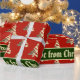 Elegant Red and Green and Faux Gold Foil Christmas Tree Pattern with custom text Merry Christmas Elizabeth With Love from Christopher, you can change or delete all text, Christmas Gift Wrapping Paper, choose matte or glossy