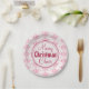 Celebrate Christmas with this unique red and white design, Light bulbs and steaming lights gently grace the outer rim, while a vibrant and elegant Merry Christmas wish, is in the middle. "Merry Christmas Cheer" surrounded by a off centre, double round frame.