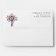 This elegant envelope features a minimalist design with a hand-drawn bouquet of flowers, including poppies and daisies, rendered in reds, whites, yellows, and greens. The clean layout includes ample negative space, enhancing the serene and sophisticated mood. A classic serif font is used for customizable text, adding a formal touch to the overall aesthetic. Perfect for weddings or special occasions, this design combines natural motifs with modern simplicity, making it ideal for those seeking an understated yet refined look.