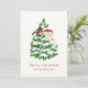 Elegant Red Bird Script Watercolor Christmas Tree Holiday Card