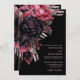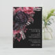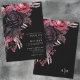 Dark Gothic Red And Black Floral Wedding Invitation perfect for autumn, fall, winter, or any time you want a dark and elegant look. A mix of black and red roses, grey foliage, and some other red or burgundy branches as well as pompas grass for a bit of a bohemian vibe. A dark and modern botanical look for an elegant gothic chic wedding. A mix of simple classic serif fonts and a beautiful script typography make this both elegant and modern. You can change out all of the font colours as well as the background colours if you want to change the look entirely. On back is a simple initial monogram and the flowers again. It has a black background with an off-white or very light pink fonts.