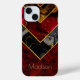 Elegant red black gold girly geometric iPhone 15 Case. To make it extra special, it is also monogrammed and personalised with name or initials or any text you like, click the "customise further" link and use the design tool to modify the design if you like.