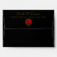 Red black and gold wedding envelopes with beautiful red and gold heart and red black and gold damask interior. These elegant red black and gold envelopes are easily customised with your details. Simply use a pen with white or gold ink to fill out your guests names and addresses. The heart is centred on the front since the return address is on the back flap.