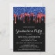 Elegant Red Blue Glitter Drip Patriotic Graduation Invitation