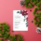 Gold Foil Wedding Invitation. Red and blush floral. Rounded. Formal. 2 locations. Both parents.