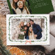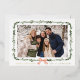 Share festive greetings with this elegant gold foil Christmas photo card featuring a watercolor greenery garland frame and classic red striped bow on a white background. The front highlights your favourite photo, finished with gold foil lettering for the greeting and family name. The back features room for an additional image, plus a personalised message, making this a versatile two-sided keepsake with a classic holiday style.