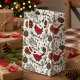 This Elegant Red Cardinal Winter Ivory Gift Bag features Nathalie Portet’s hand-drawn ink illustration of red cardinals, pinecones, pine needles, and winter berries on a crisp white background. A timeless and nature-inspired design that adds a touch of winter elegance to your holiday gift wrapping.