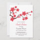 Elegant Red Cherry Blossom Sakura Floral Birthday Invitation