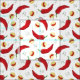 If you love red chile, this is the look for you. An elegant pattern of large red chile peppers mixed with smaller versions on yellow circles. Lots of green and red dots fill in open spaces on a white background. Also comes in a green chile pattern. matching products available.
