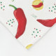 If you love red chile, this is the look for you. An elegant pattern of large red chile peppers mixed with smaller versions on yellow circles. Lots of green and red dots fill in open spaces on a white background. Also comes in a green chile pattern. matching products available.