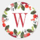 Elegant Red Christmas Greenery Monogram Wreath Classic Round Sticker