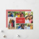 Stylish photo collage card for the holidays features six (6) of your favourite family photos from the year with custom "Merry Christmas / Warmest Wishes" and monogram text. The back of the card includes a pattern of diagonal white stripes. Note, the red background + white and pink text colours can be modified to coordinate with your photo.