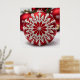 Red Christmas ornament featuring intricate white snowflake detail, surrounded by festive decorations and a snowy setting. Perfect for holiday celebrations and festive decorations.