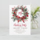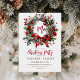 Elegant stylish holiday card with festive Christmas wreath in watercolor technique and classic font and handwritten font.