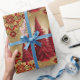 Elegant Red Christmas tree Gold merry Xmas Pattern Wrapping Paper