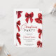 This elegant Christmas party invitation features coquette velvet watercolor red bows on a clean white background for a festive yet stylish look. The bold red tones and playful calligraphy bring just the right mix of cheer and sophistication, making it ideal for any holiday gathering — from family dinners to company parties. All text is fully editable, so you can adjust names, event details, or even switch it for a holiday brunch or cocktail party. A perfect fit for anyone who loves a classic red holiday aesthetic with a modern twist.