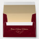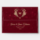 Simple, elegant, modern faux glitter red burgundy 5x7 envelope for winter holidays greeting cards or wedding invitations with gold foil inside, return address and adorable heart monogram at the top flap.