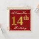 Elegant, Red, Faux Gold 14th Birthday; Custom Name Invitation