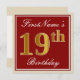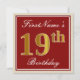 Elegant, Red, Faux Gold 19th Birthday; Custom Name Invitation