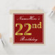 Elegant, Red, Faux Gold 22nd Birthday; Custom Name Invitation