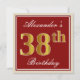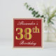 Elegant, Red, Faux Gold 38th Birthday; Custom Name Invitation