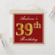 Elegant, Red, Faux Gold 39th Birthday; Custom Name Invitation