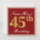 Elegant, Red, Faux Gold 45th Birthday; Custom Name Invitation