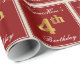 Elegant, Red, Faux Gold 4th Birthday + Custom Name Wrapping Paper