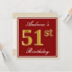 Elegant, Red, Faux Gold 51st Birthday; Custom Name Invitation