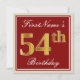 Elegant, Red, Faux Gold 54th Birthday; Custom Name Invitation