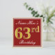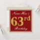 Elegant, Red, Faux Gold 63rd Birthday; Custom Name Invitation
