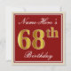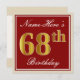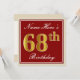 Elegant, Red, Faux Gold 68th Birthday; Custom Name Invitation