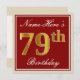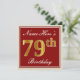 Elegant, Red, Faux Gold 79th Birthday; Custom Name Invitation