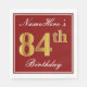 Elegant Red, Faux Gold 84th Birthday + Custom Name Napkin