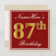 Elegant, Red, Faux Gold 87th Birthday; Custom Name Invitation