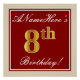 Elegant, Red, Faux Gold 8th Birthday + Custom Name Poster