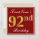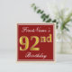 Elegant, Red, Faux Gold 92nd Birthday; Custom Name Invitation