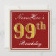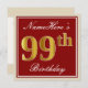 Elegant, Red, Faux Gold 99th Birthday; Custom Name Invitation