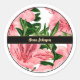 Elegant Red Floral Background Personalised Name Classic Round Sticker