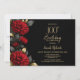 Elegant Red Floral Black 100th Birthday Party Invitation
