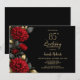 Elegant Red Floral Black 85th Birthday Party Invitation