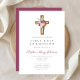Elegant Red Floral Boho Cross First Communion Invitation