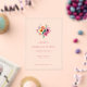 This elegant wedding invitation features a beautifully illustrated floral arrangement in soft pastel hues of peach, pink, and yellow, set against a clean, light background. The design employs a modern minimalist style with ample spacing between the text lines, which are presented in a classic serif font for a sophisticated touch. Decorative elements include subtle dots that separate sections, enhancing the overall layout. Perfect for couples seeking a refined and contemporary look, this invitation sets the tone for an unforgettable celebration.