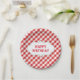 Elegant Red Gingham Pattern Personalised Birthday Paper Plate