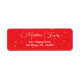 Make your holiday mail stand out with this elegant and festive return address label. Featuring a bold Christmas red background and a playful pattern of gold confetti or glitter-like dots, this label is perfect for all your seasonal mailing. The family name is written in a beautiful, flowing script font, giving it a touch of classic elegance, while the address uses a clean, modern sans-serif font for clear readability.
