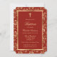 Elegant Red Gold Cross Script Floral Girl Baptism Invitation