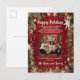 Elegant Red & Gold Family Photo Holiday Postcard
